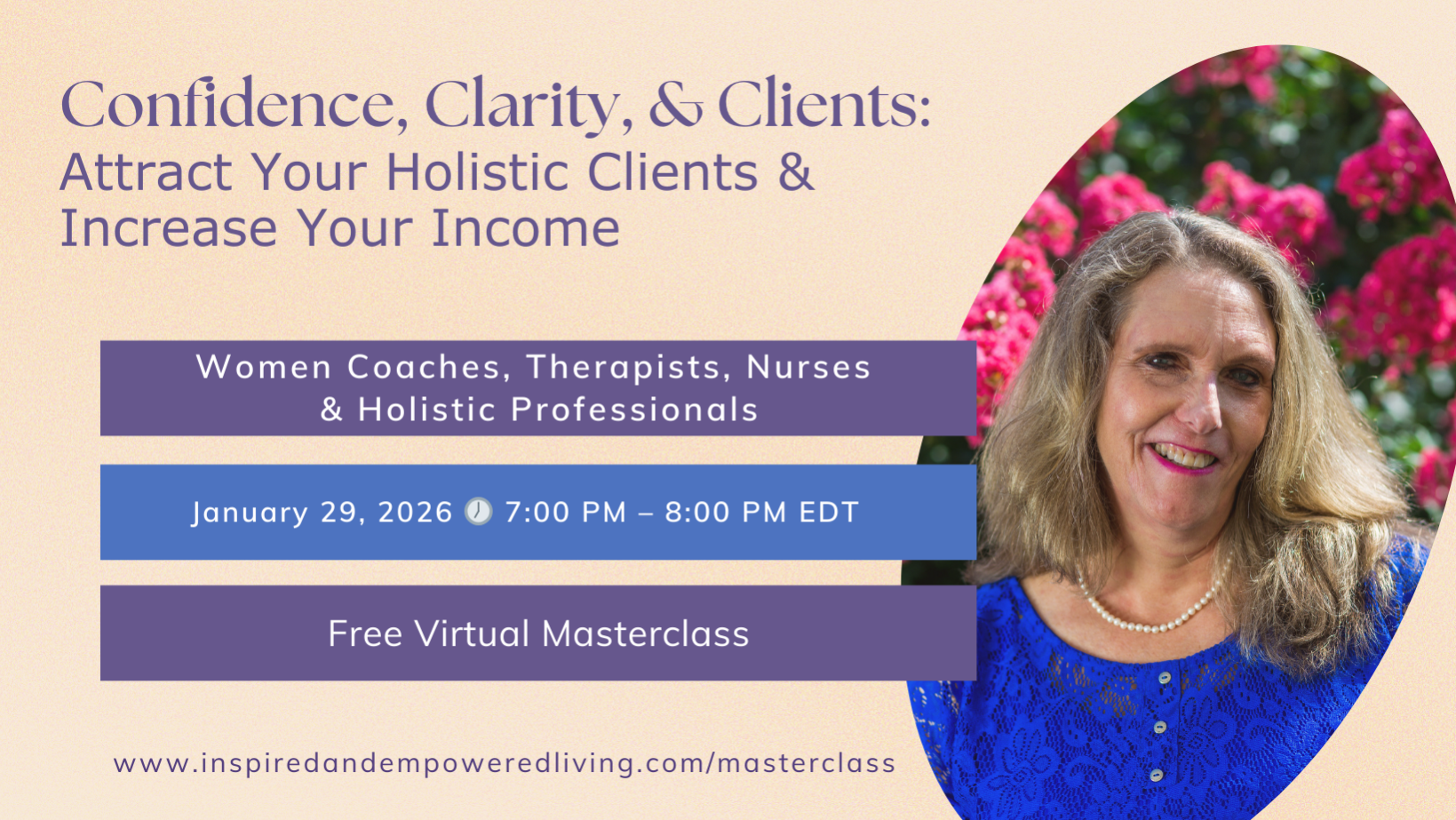 Confidence, Clarity, Clients: Attract Your Holistic Clients; Increase Your Income Jan 29 Confidence, Clarity, Clients: Attract Your Holistic Clients; Increase Your Income 12:00 am - 1:00 am RSVP Now Free